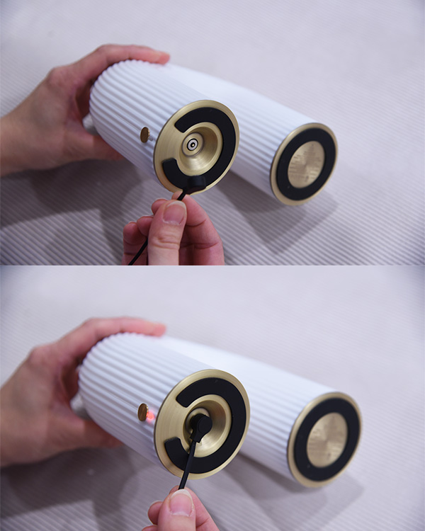 充電方法は付属の充電ケーブルの端子を裏面に差し込むだけ。