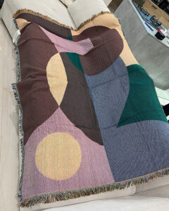 ソファにバサッとかけておくだけで、お部屋がギャラリーのような雰囲気になります。